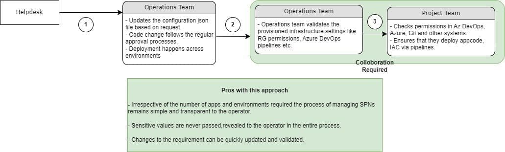 - Collaborating with the Identity team to set up SPN credentials within the DevOps project, either through Service Connection or variable groups.
