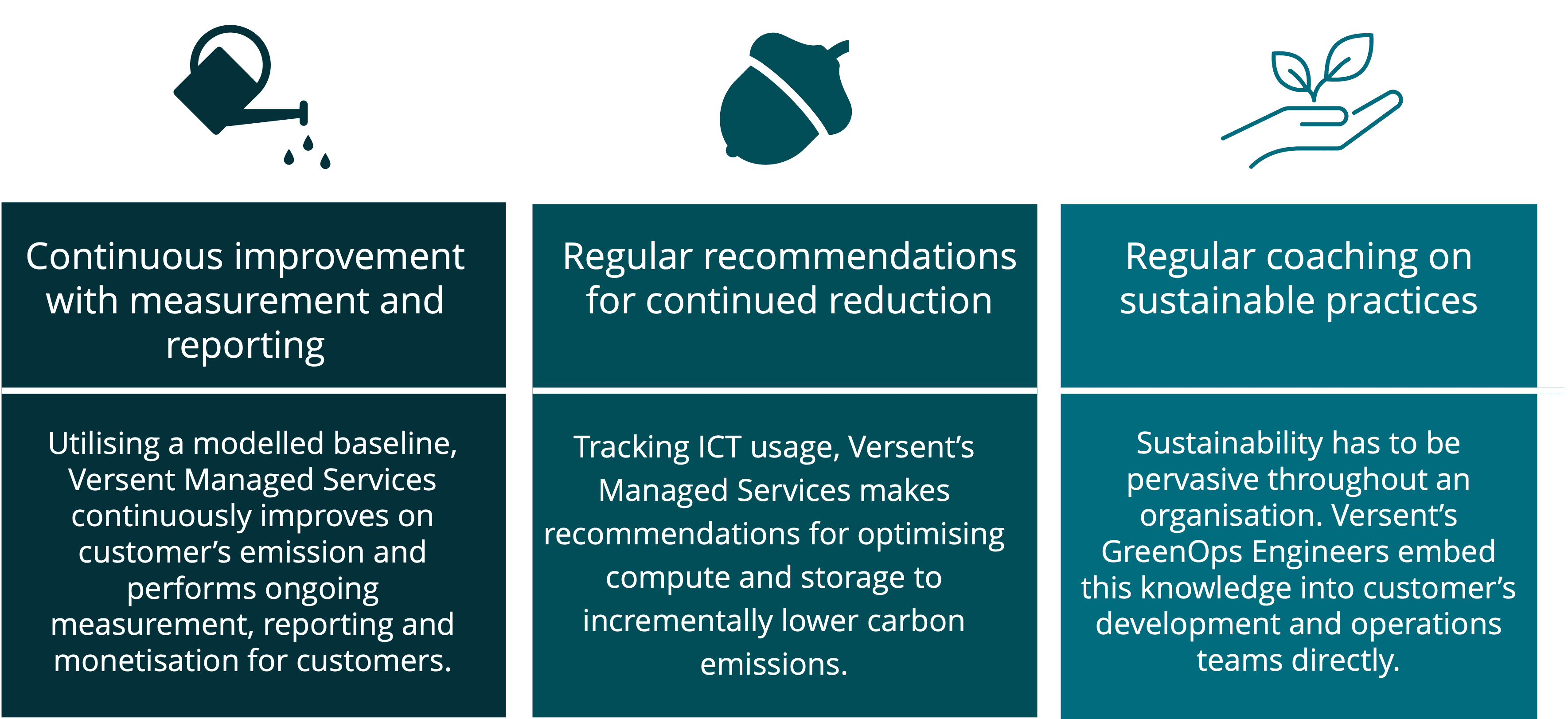 Versent’s GreenOps is our approach to ensuring our customers are able to maintain their sustainable practices in the long term by building sustainability into operations.