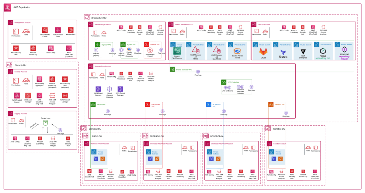 The AWS Landing Zone Accelerator expedited the deployment of the customer’s cloud infrastructure, ensuring a secure and scalable foundation for their digital transformation. By automating the setup of a well-architected AWS environment, Versent established standardised security controls across multiple AWS accounts, ensuring consistency and compliance. AWS Control Tower was the central governance and compliance hub, providing a unified view of their cloud infrastructure and enforcing guardrails and compliance policies.